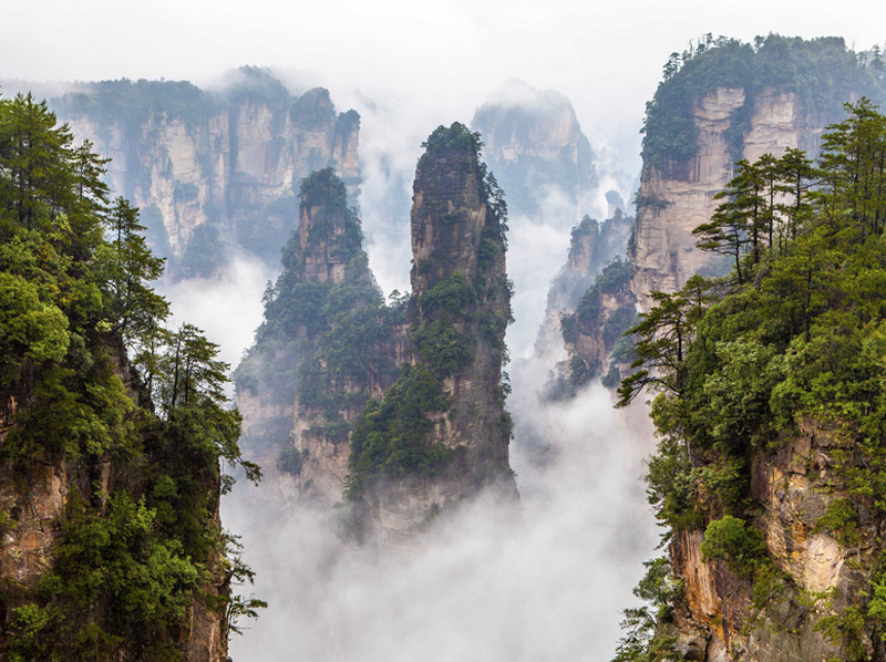 На территории старейшего из национальных парков Китая обитает более 500 видов животных и находятся невероятные по красоте скалы Улинъюань, ставшие прототипом пейзажей планеты Пандора из фильма «Аватар». Высота самых высоких пиков достигает 3 километров. Скалы покрыты растительностью и деревьями, чей возраст насчитывает несколько сотен лет.
