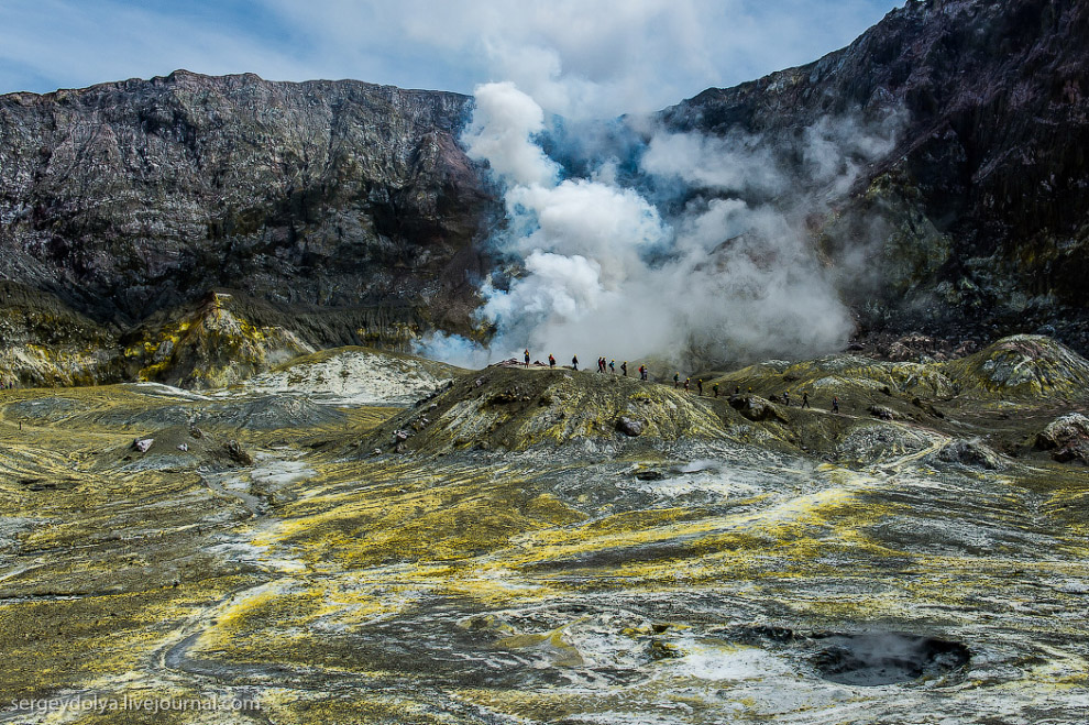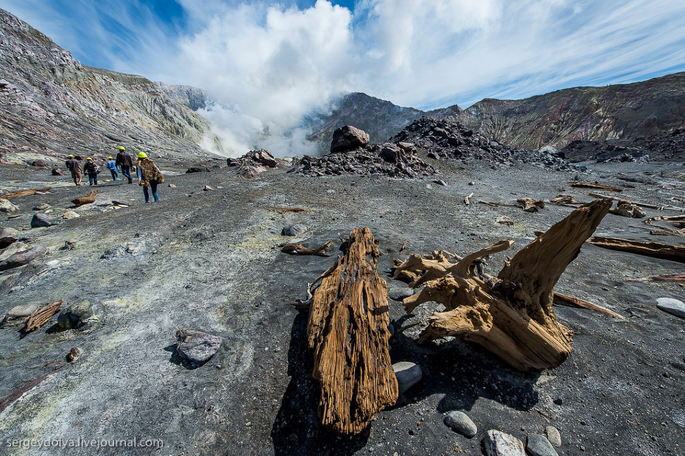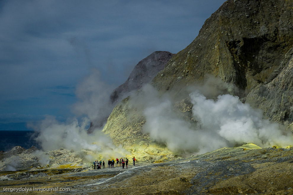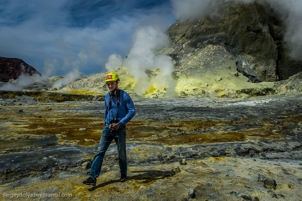 Интересно, что маори (коренной народ Новой Зеландии) трижды продавали вулкан европейским промышленникам. Сейчас остров — это частная собственность и попасть сюда можно только после получения специального разрешения. Экскурсию нельзя назвать дешевой: наш полет обошелся в $5000. Тем не менее, ценник не отпугивает людей: по словам пилота, он летает на остров дважды, а то и трижды в день. При этом в его компании — три вертолета. При этом в Новой Зеландии — несколько компаний, которые занимаются экскурсиями на Уайт. В общем, — хорошо иметь домик в деревне вулкан в океане.
