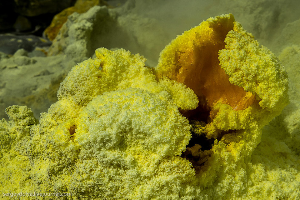 Желтый цвет на земле образует сера.