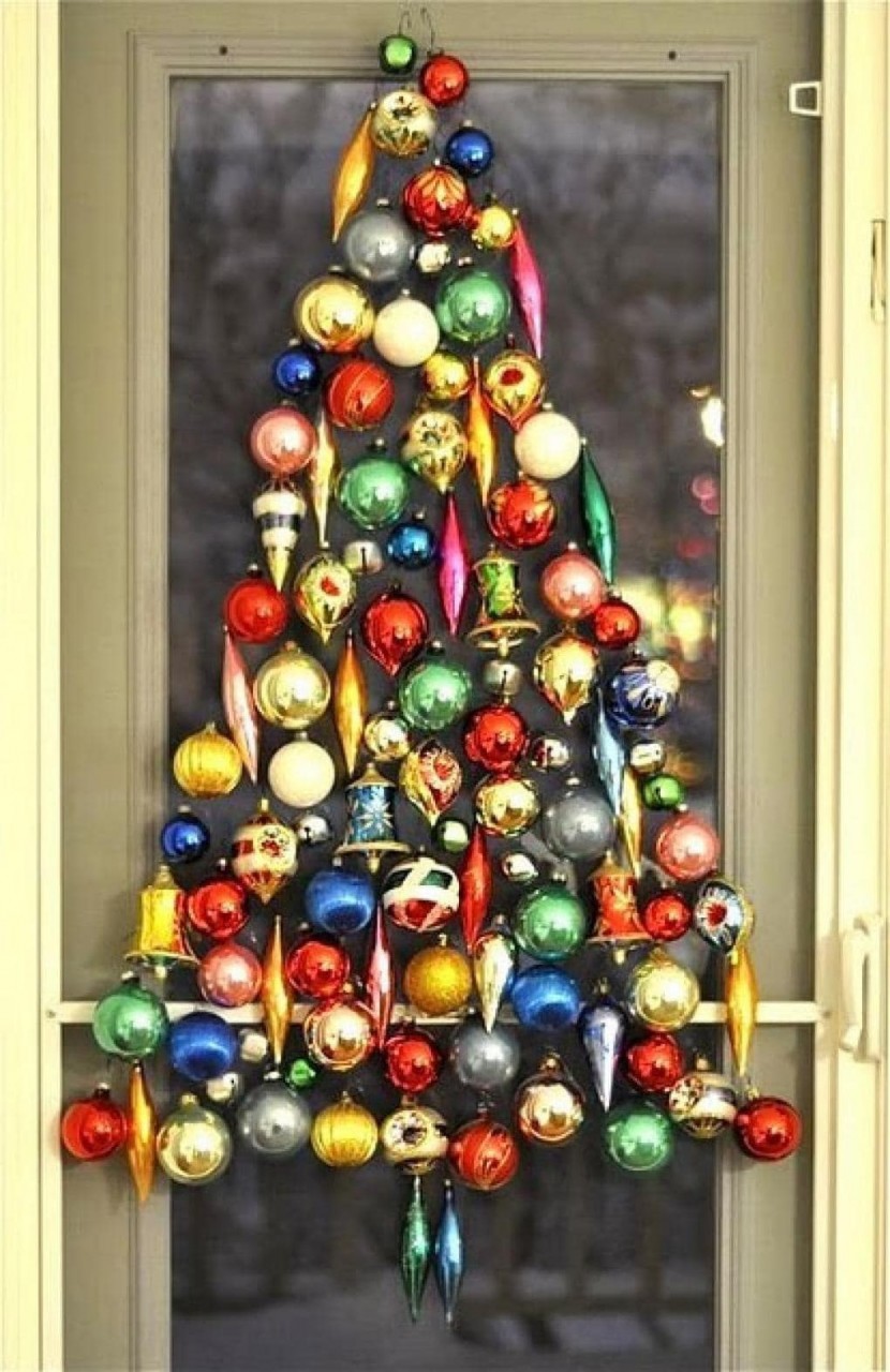 Отлично импровизированная елка будет смотреться на фоне окна или прозрачной вставки межкомнатных дверей.