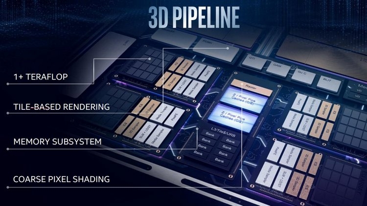 При работе с 3D-графикой новое поколение Intel iGPU будет опираться на тайловый метод рендеринга, предполагающий разделение изображения на части и параллельный рендеринг каждой из них силами GPU. Такой подход снижает потребность в высокой скорости видеопамяти. К тому же новая архитектура 11-го поколения получила переработанную подсистему памяти и кешей. Также отмечается поддержка технологии крупноструктурного затенения (Coarse Pixel Shading), которая предполагает наложение теней в более низком разрешении. Это должно не сильно сказаться на качестве изображения, но при этом позволит снизить нагрузку на сам графический процессор.