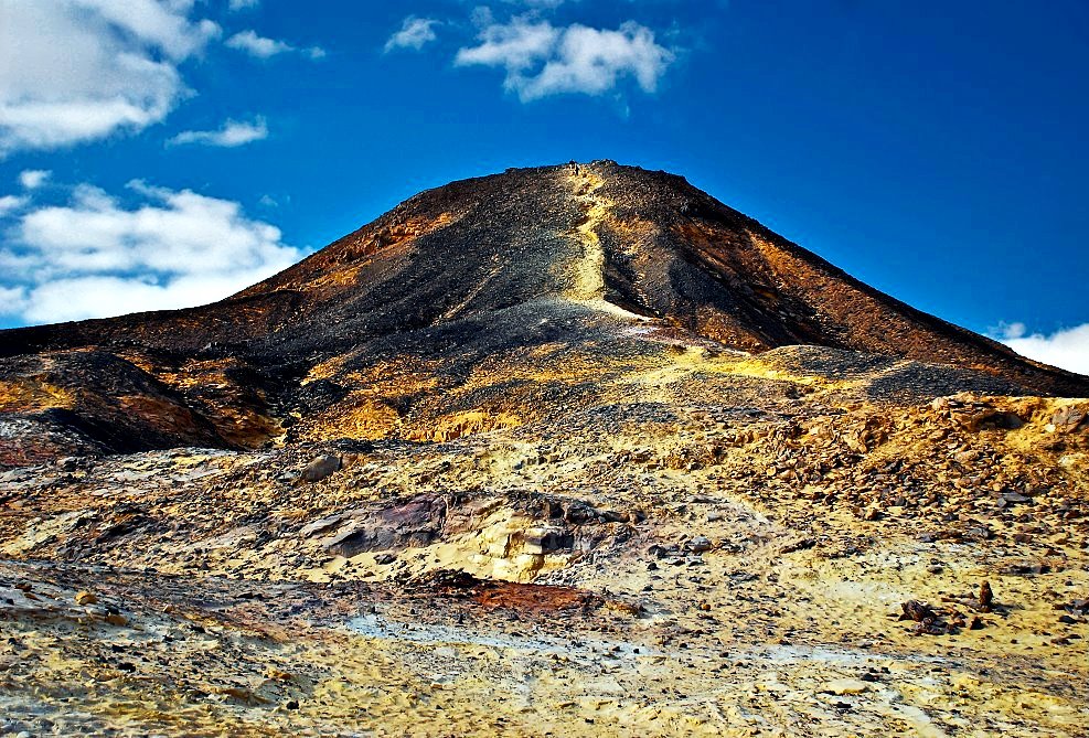В Египте у путешественников тоже есть возможность посетить одну из самых необычных пустынных областей в мире – Черную пустыню. Сформировалась она благодаря тысячелетней вулканической активности, которая имела место в этом районе, сегодня пустыня сплошь усыпана камнями черного цвета – застывшей лавой. В некоторых местах пустыни можно увидеть красивые холмы, покрытые черными камнями, а в других просторные равнины с землей оранжево-бурого цвета.