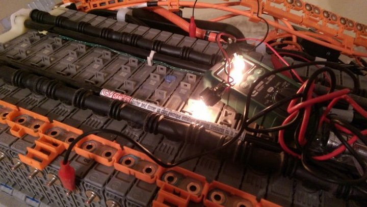 Я вытащил батарейную систему и принес её в гараж. Выглядела она также как и у Prius — что наводит на мысль, что они взаимозаменяемы! Моей мыслью было обнаружить те ячейки, которые, возможно, выдают меньший вольтаж чем положено. Всё дело в том, что есть возможность заменить одну неисправную ячейку всего за $45. Это будет просто.