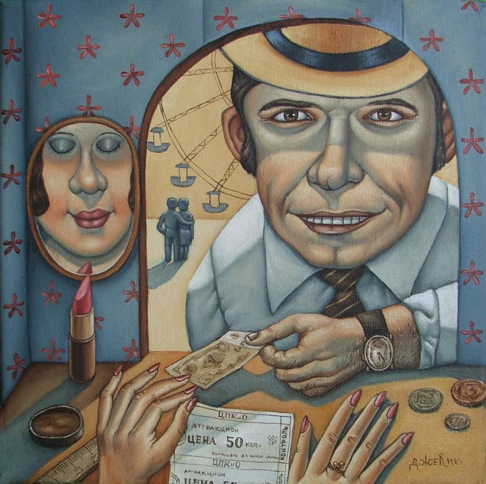 Донецкая художница Анжела Джерих продолжает рисовать советское прошлое, центром которого стал человек — простой, со вполне земными желаниями есть, любить и быть любимым, иногда немного выпивать и испытывать прочие земные радости, помимо построения всемирного социализма. И кажется, на эту милую ностальгическую правду смотреть в разы приятнее, чем на любой выдуманный идеал.