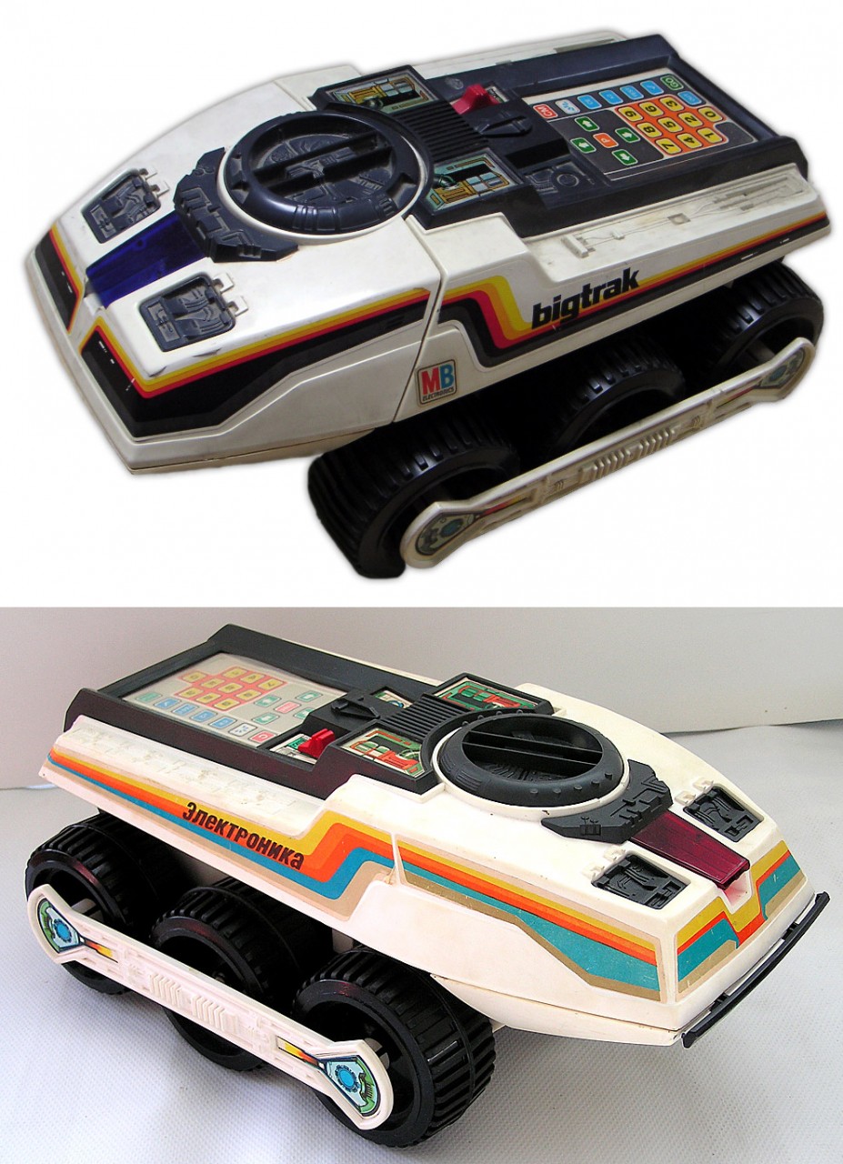 Электроника ИМ-11 «Луноход», 1985 год — Big Trak, 1979 год. Спустя шесть лет клон игрушечной машинки компании Milton Bradle появился в СССР благодаря Солнечногорскому электромеханическому заводу.