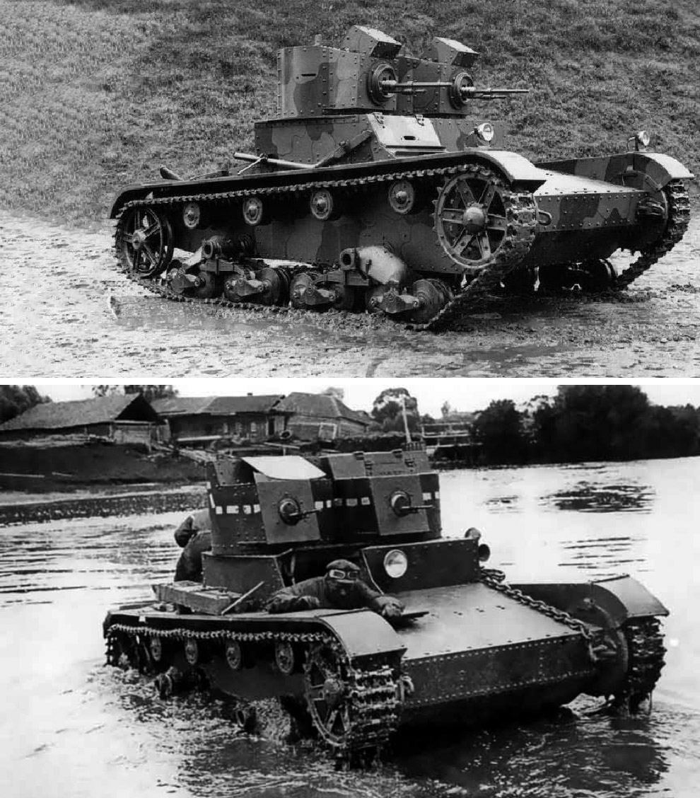 Vickers Mk E, 1930 год — Т-26, 1931 год. В военные годы Великобритания считалась лидером в производстве бронетехники, СССР приобрел полный пакет технической документации и лицензию на производство. Так появился легкий танк Т-26.