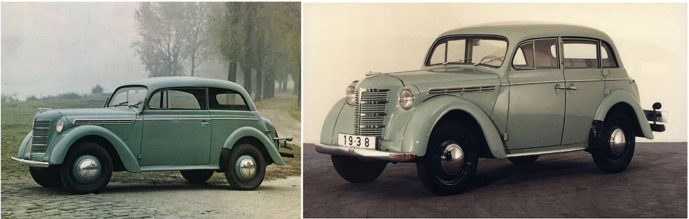 Opel Kadett, 1937 — Москвич-400, 1946. СССР после войны получил право на некоторую немецкую промышленность, включая завод Opel. Дизайн авто немного изменен — СССР пересобирал машину на основе сохранившихся экземпляров, вся документация была утеряна.
