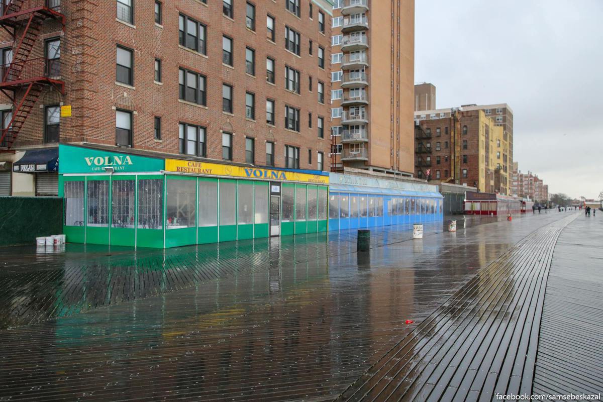 На Брайтоне дождь смыл с бордвока почти всех людей.