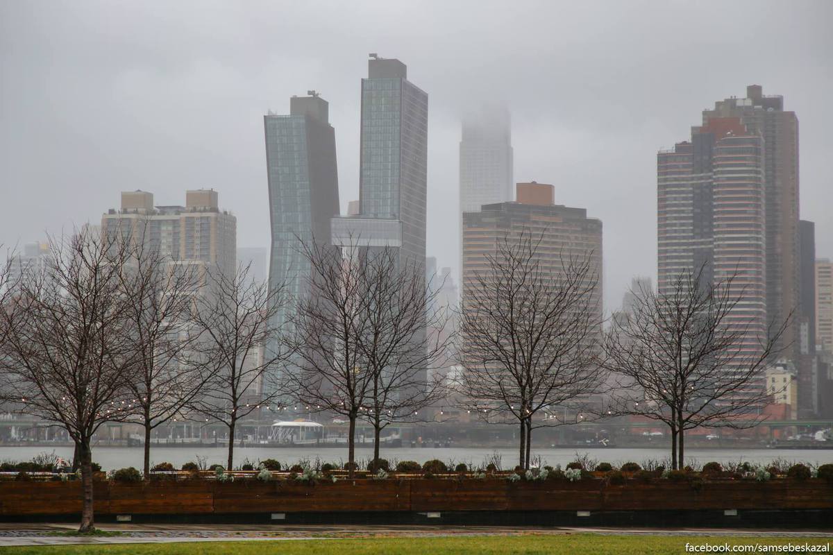 Пелена дождя и тумана над Манхэттеном. Лонг-Айленд-сити.