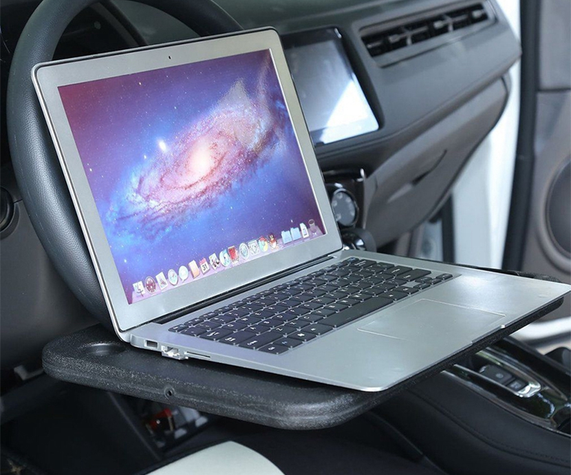 Например, столик для ноутбука с креплением на руль. Но если держатель смартфона цепляется на верхнюю часть «баранки», то эта потрясающая подставка оккупирует нижнюю часть обода. Только непонятно, как этим пользоваться: довольно сложно представить себе автомобиль, в котором водительское кресло отъезжает так далеко назад, чтобы обеспечить возможность пользоваться таким импровизированным рабочим местом. Цена кронштейна для телефона — около 1 доллара, а столик для ноута обойдётся в 10-15.