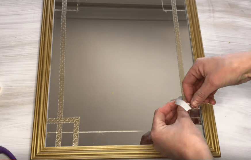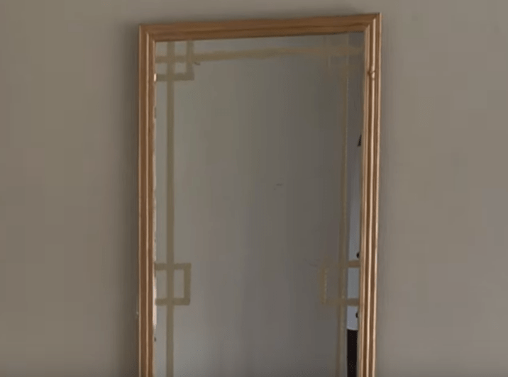 Для начала делаем разметку, чтобы узор был симметричным. Сделать это можно при помощи скотча и линейки. Для пометок на зеркале можно использовать свечу или обмылок.