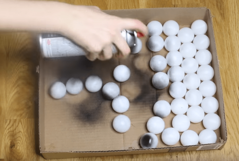 Распылив на шарики достаточное количество краски, даем деталям полностью просохнуть.