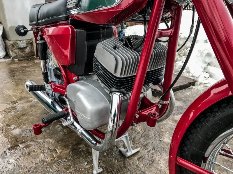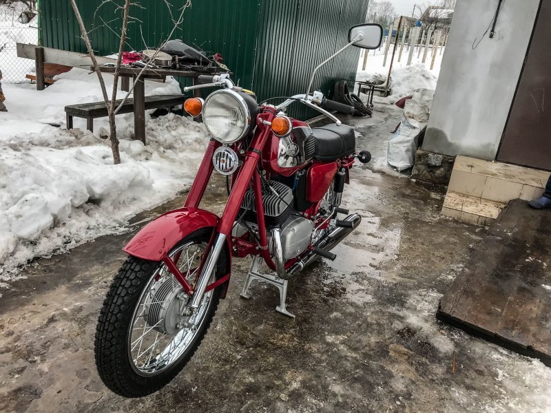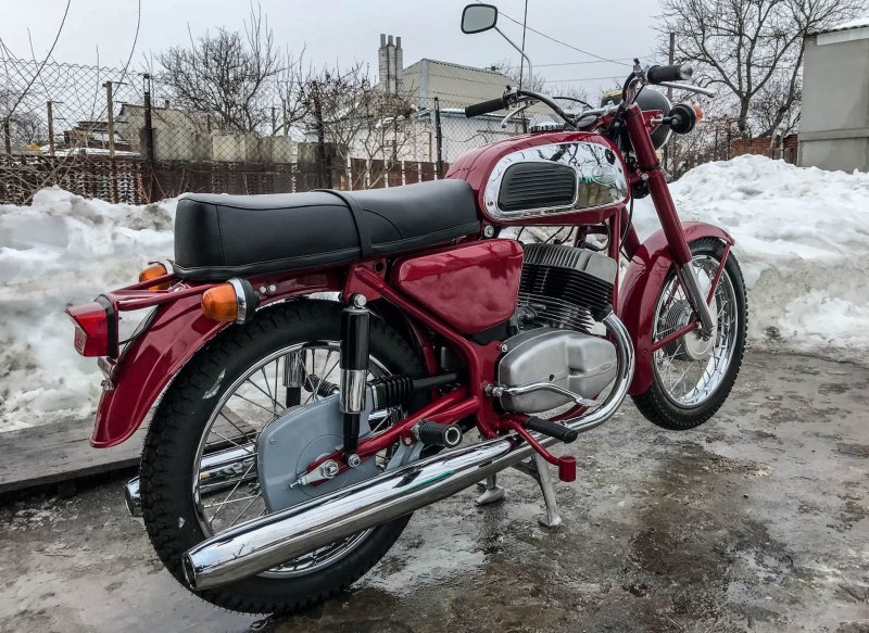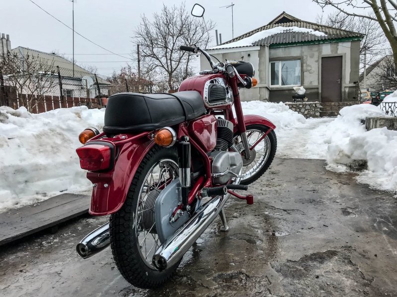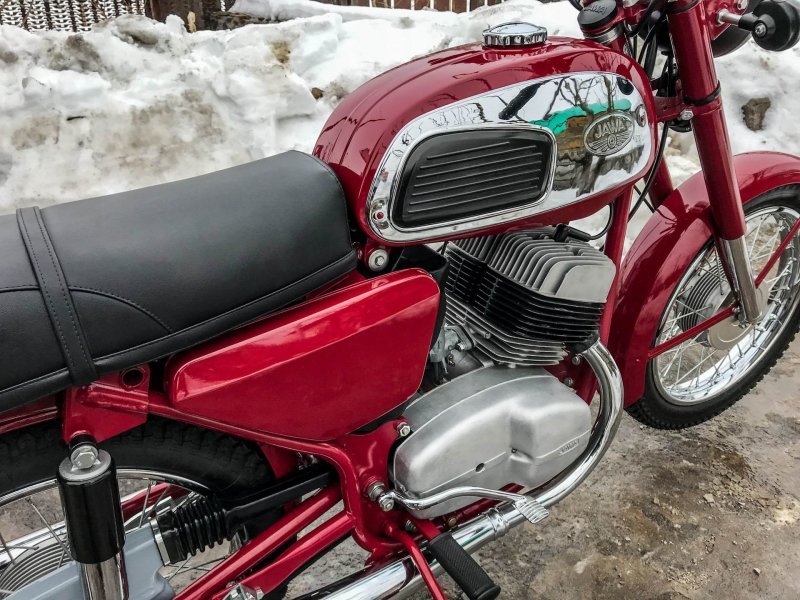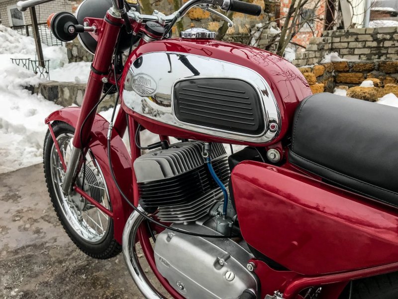 Снаряженная масса такой "Явы"-одиночки составляет 155 килограмм, при этом грузоподъемность машины достигает 180 кг (2 взрослых ездока).