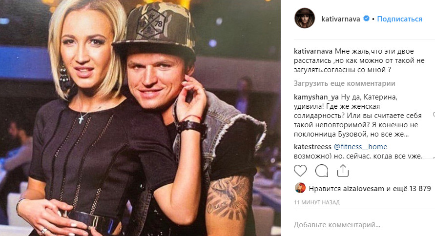 "Что тебе сделала Бузова? или это снова пиар?", "Екатерина,как не красиво с твоей стороны. Зачем в чужом белье копаться...", "Да так можно про любую сказать, да как от такой не загулять. И про вас, Екатерина тоже", "Может аккаунт взломали?", "Назревает скандал", "Это пиар за счет Бузовой!!! У Оли 15 млн подписчиков,а у Варнавы 3 раза меньше", - написали поклонники.