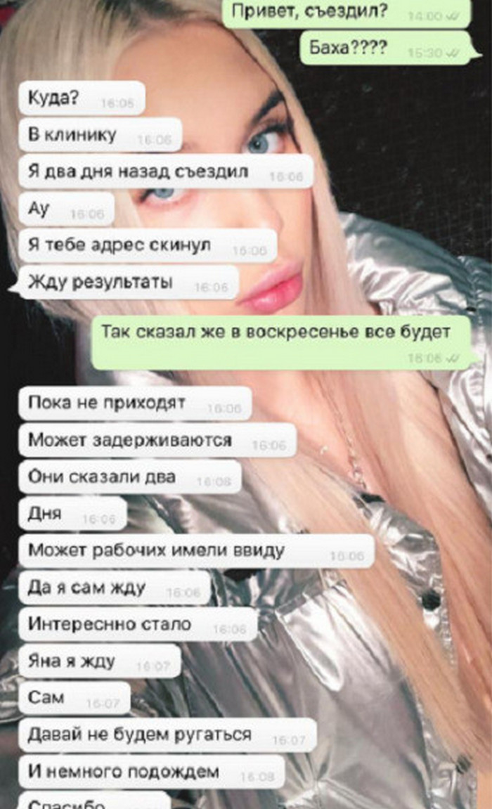В качестве доказательства Яна Шевцова предоставила переписку с Jah Khalib. В ней последний уверяет девушку, что покажет ей результаты анализов совсем скоро.