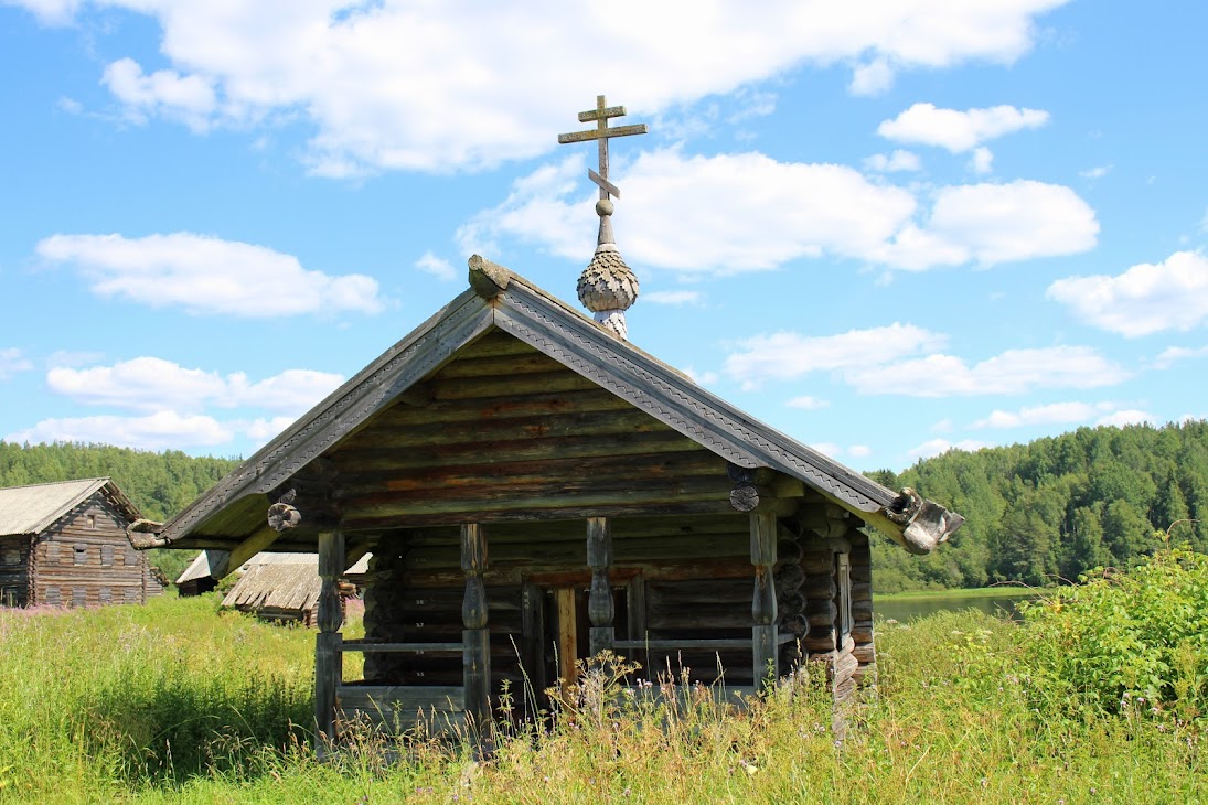 Между церковью и деревней почти скрылась в траве часовня Андрея Первозванного и пророка Илии(XIX в.)