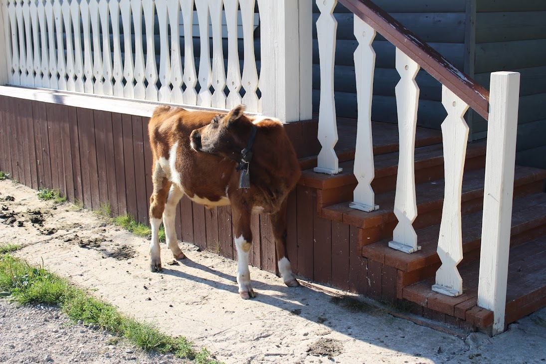 Гостиница "Постоялый двор" абсолютно очаровательна, прямо по ступеням за окнами ходят коровы, да и внутри номер минималистичный, но приятный