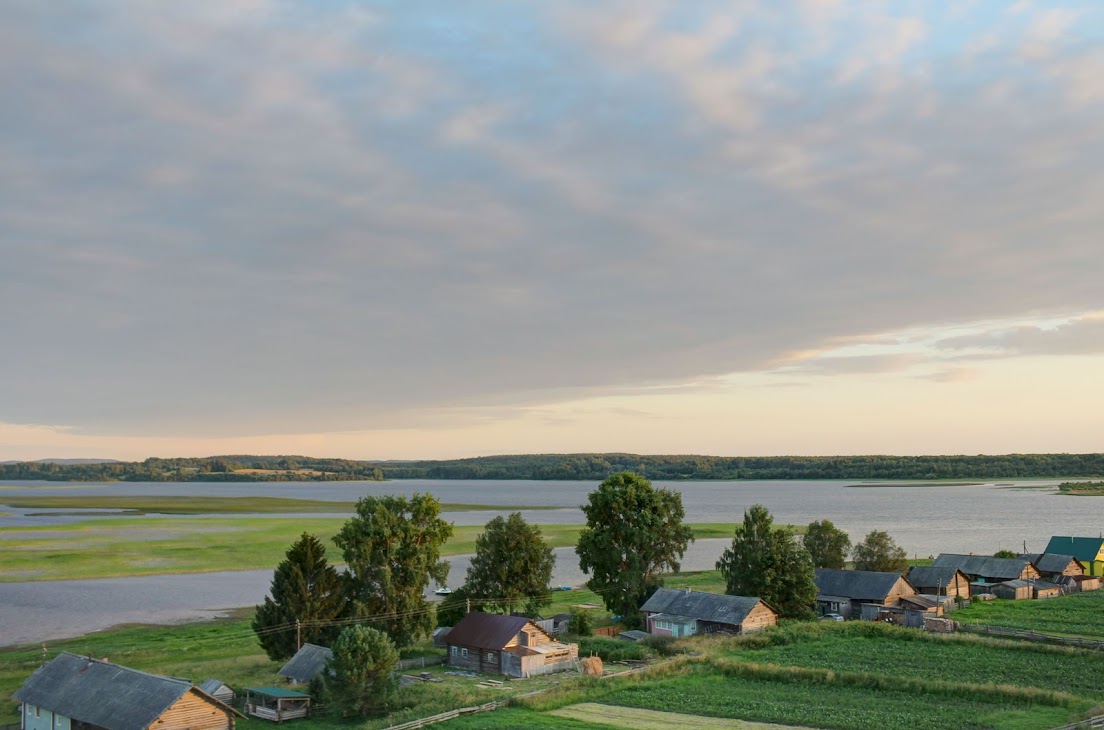 Заканчивается экскурсия по часовне посещением колокольни и отличными видами села и озера на закате