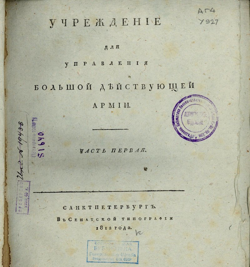 Финансовое обеспечение армии в условиях войны было отражено в основном документе "Учреждении для управления большой действующей армией", принятом в январе 1812 г.