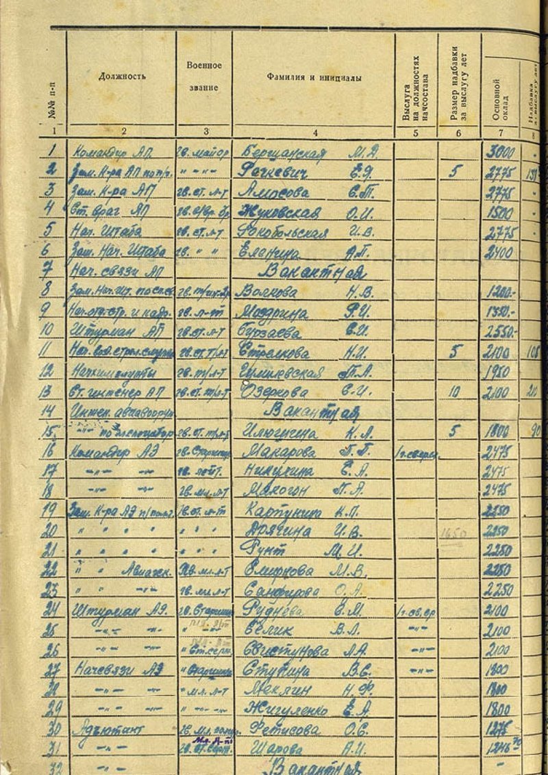 Расчетная ведомость 46-го гвардейского ночного легко-бомбардировочного авиаполка "Ночные ведьмы"