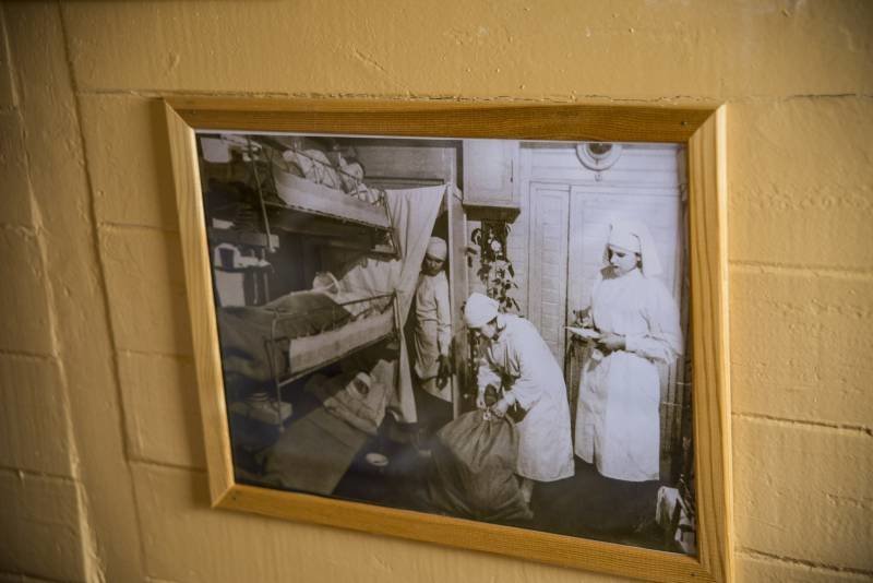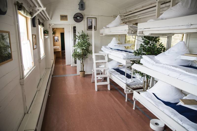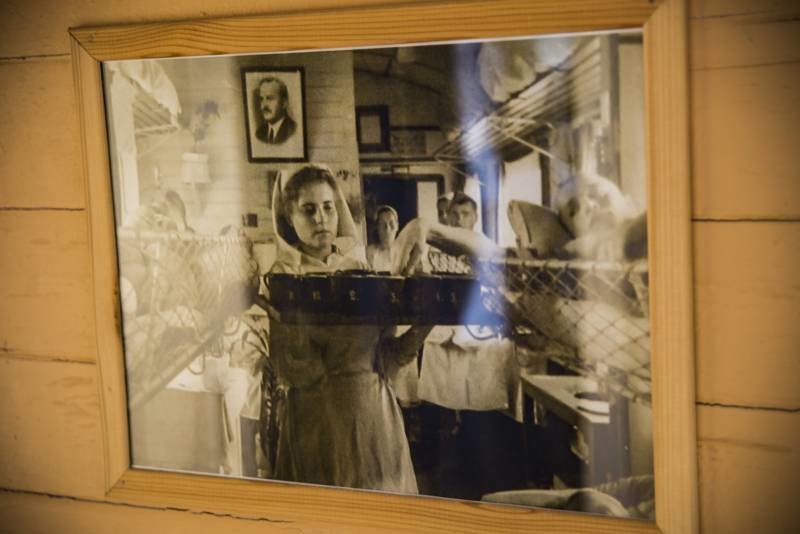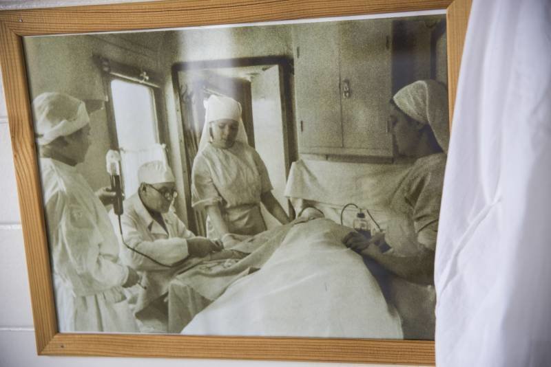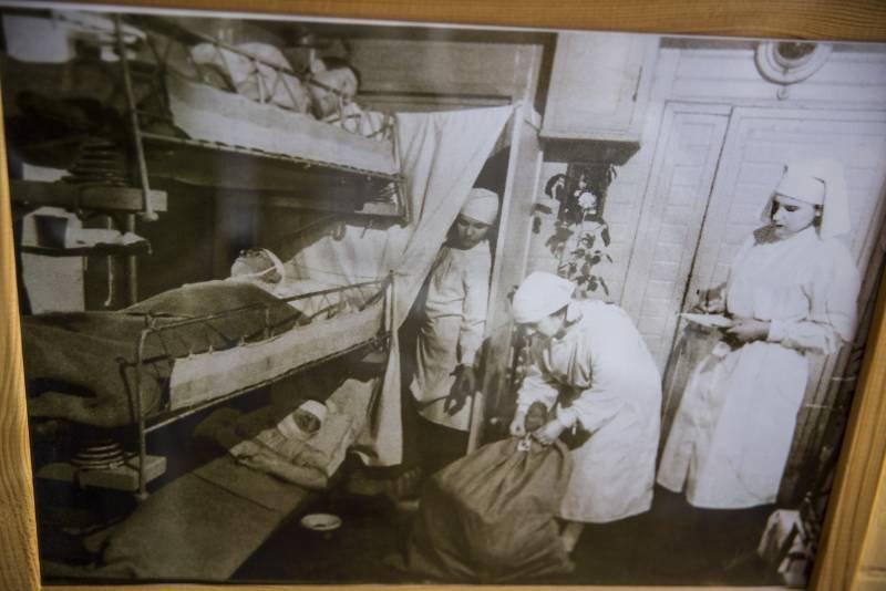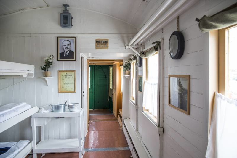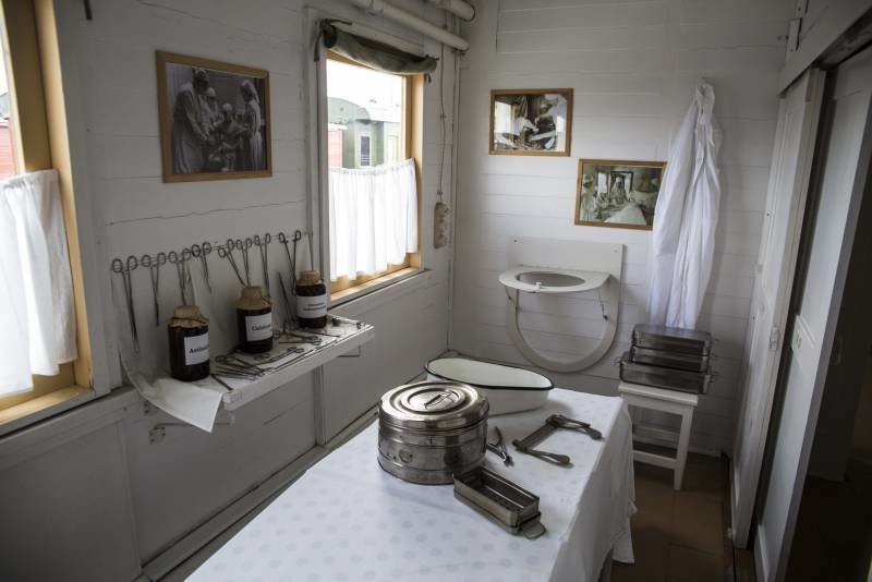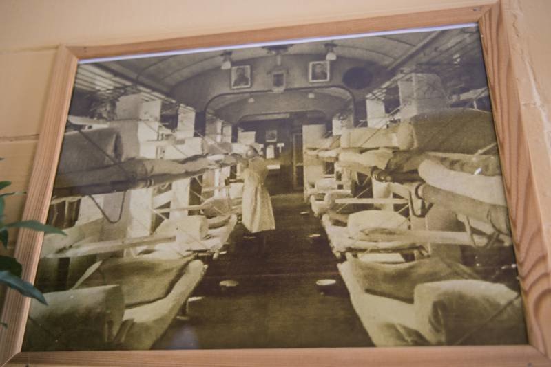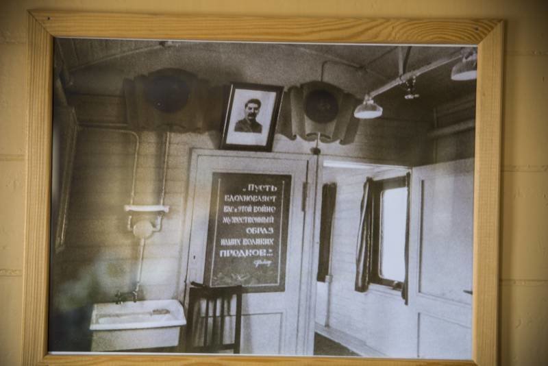 Трогательно поскрипывающие полы, запах дерева, все можно потрогать, ко всему можно прикоснуться. Красиво. Но с другой стороны понимаешь, что в "боевом" состоянии эти вагоны выглядели совершенно не так. И из динамиков не Русланова пела, а их, скорее всего, и слышно-то не было за стонами и криками раненых.