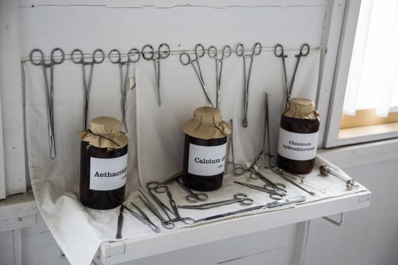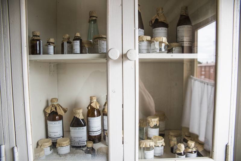 Аптека. В привычном для того времени формате. Готовых форм было мало, в основном дозировку готовили на месте в виде порошка или инъекции.