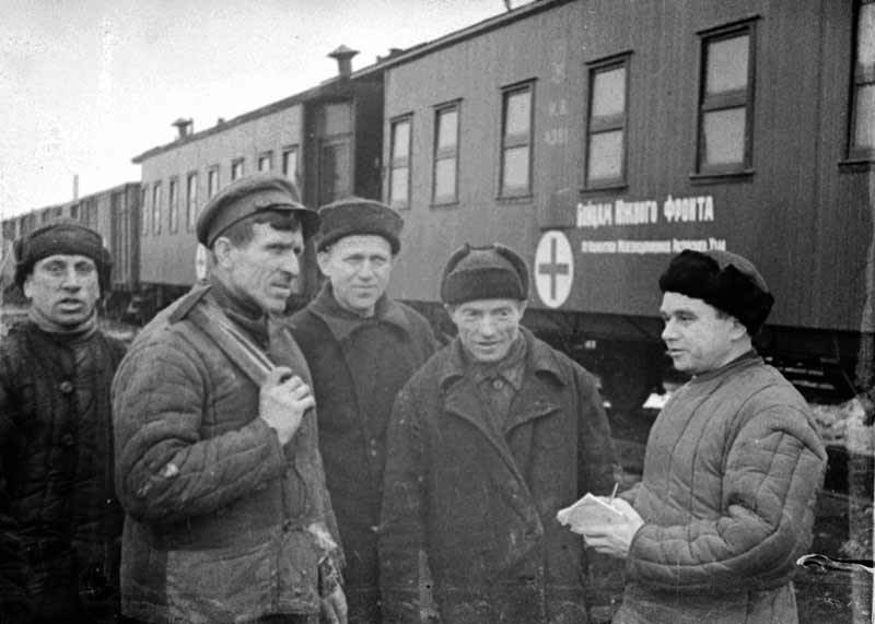 "На станции Куйбышев организовали опорный пункт ремонта военно-санитарных поездов. В отдельные дни сюда прибывало по восемь поездов. Все их надо было тщательно осмотреть, проверить и отремонтировать системы отопления, водоснабжения, электроосвещения, вставить выбитые стекла. Больших затрат труда требовал ремонт кузовов, крыш, внутреннего инвентаря.
