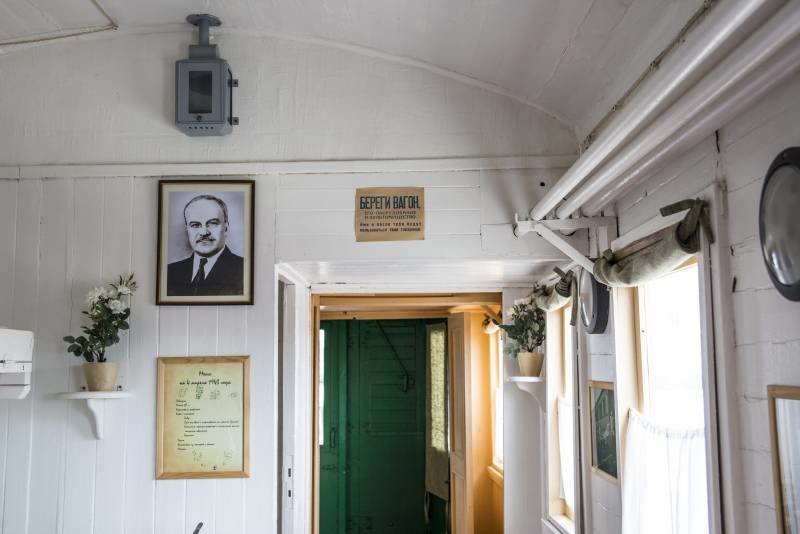 Интересно, правда? Кстати, на многих фото именно так: в вагонах портреты Вячеслава Михайловича Молотова, хотя более уместен был бы портрет или Сталина, или Кагановича (наркома НКПС). Хотя от НКПС тут присутствует Иван Ковалев, сменивший Лазаря Моисеевича Кагановича на посту наркома НКПС в 1944 году.