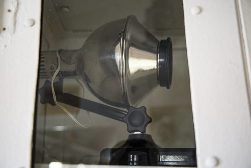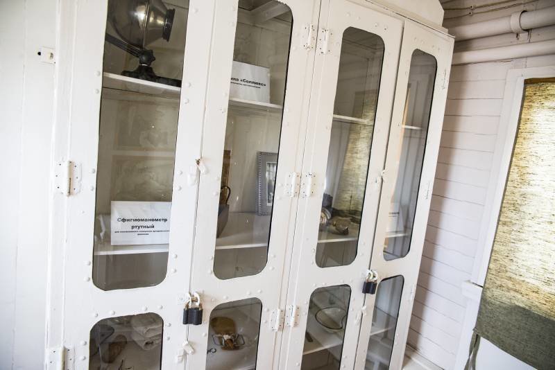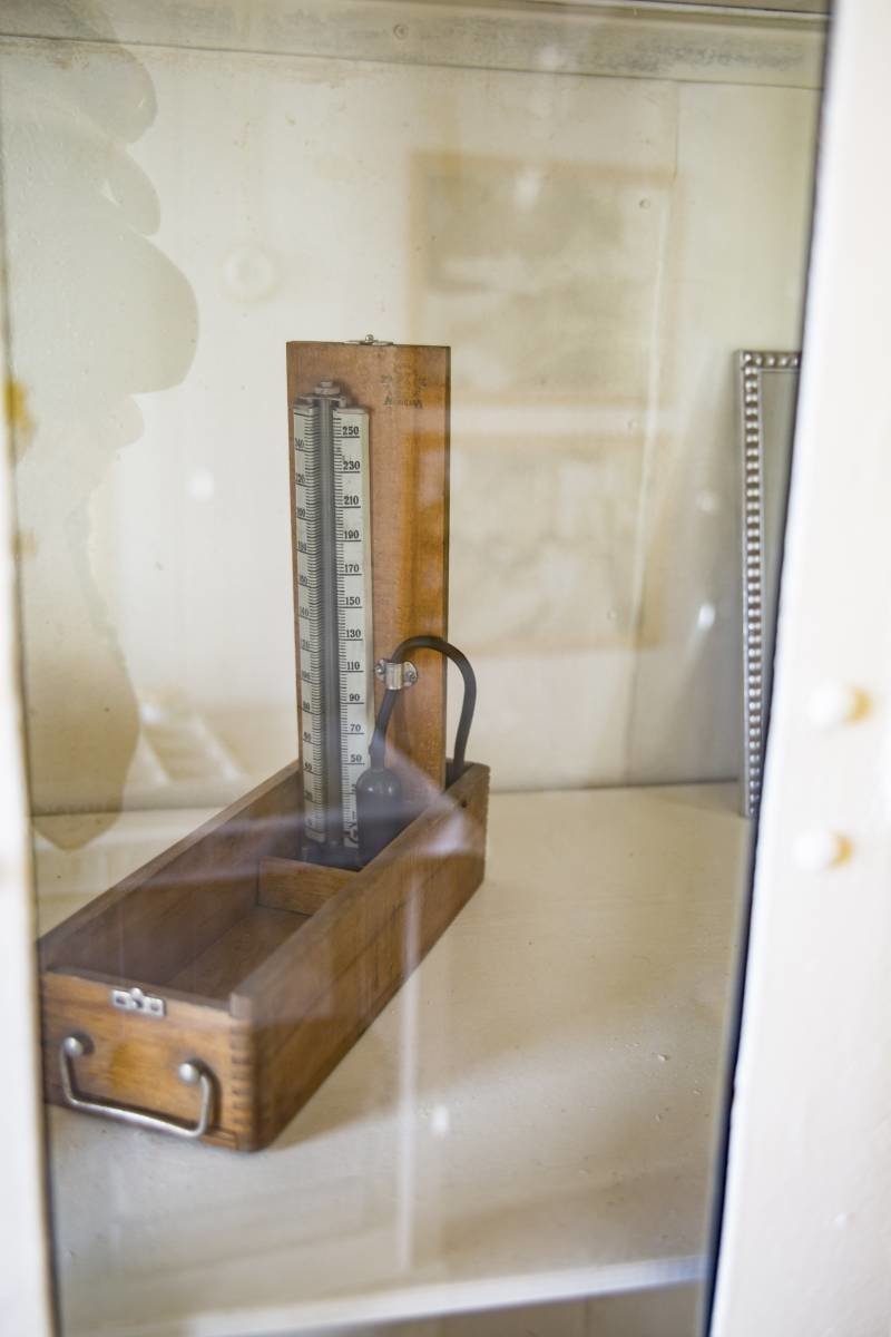 Шкаф с медоборудованием. Тонометр, аппарат Эсмарха, ультрафиолетовая лампа.