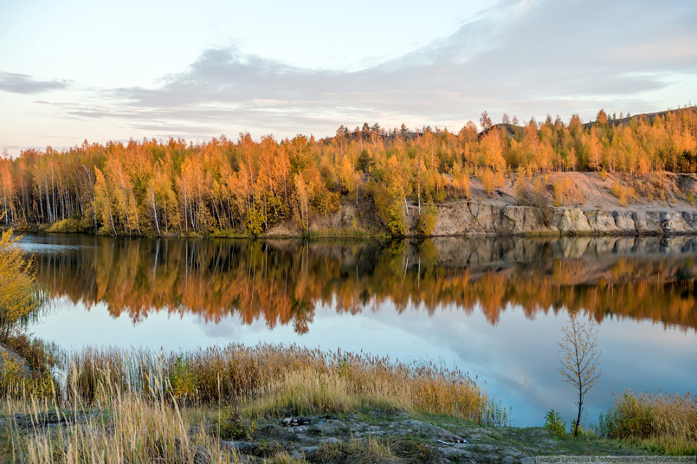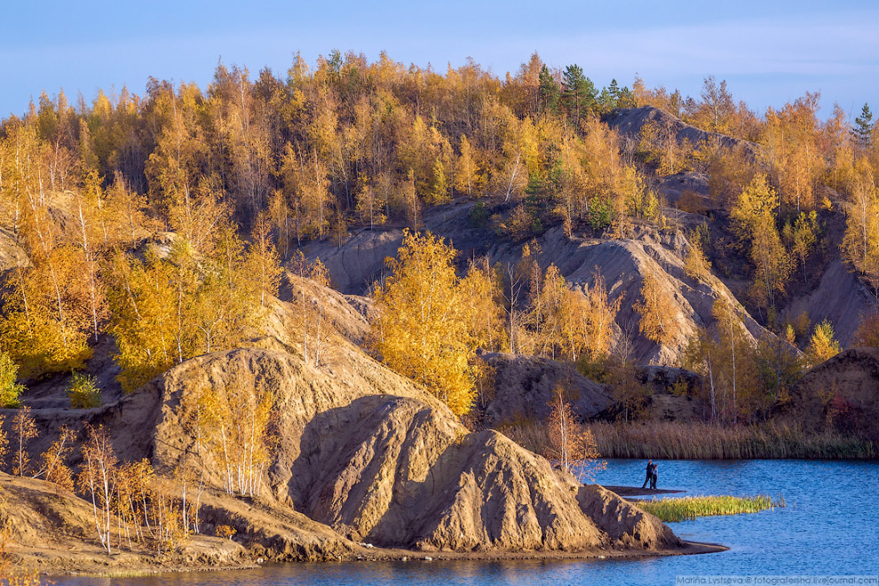 С этой стороны карьеров в субботу вечером народа вообще не было — вдоль берега идёт довольно скользкая тропа то вверх, то вниз.
