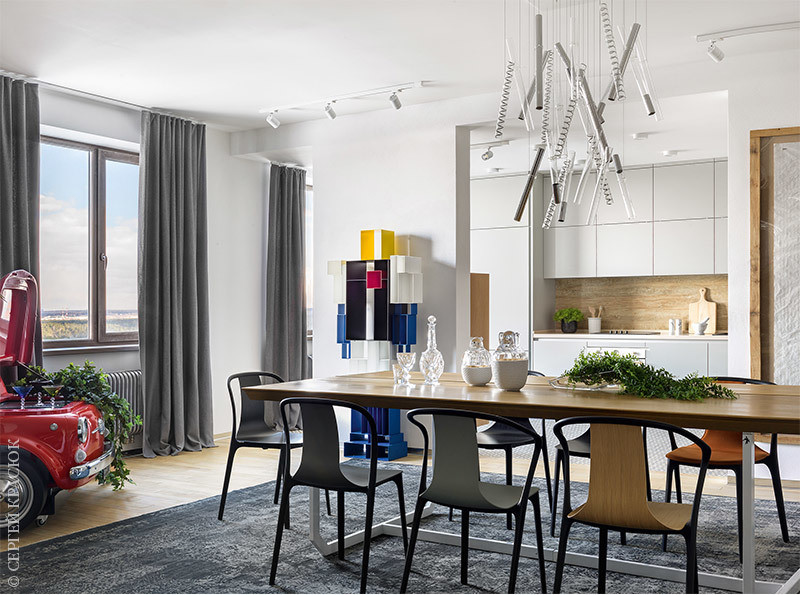 Дизайнеры Степан Бугаев и Екатерина Олейникова оформили новую квартиру шоумена Андрея Малахова, разместив в ней лучшие экземпляры из его коллекции современного искусства.
