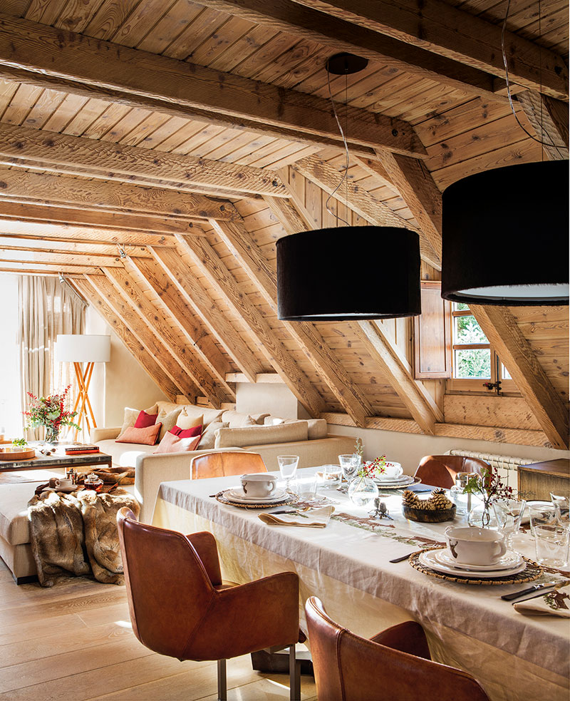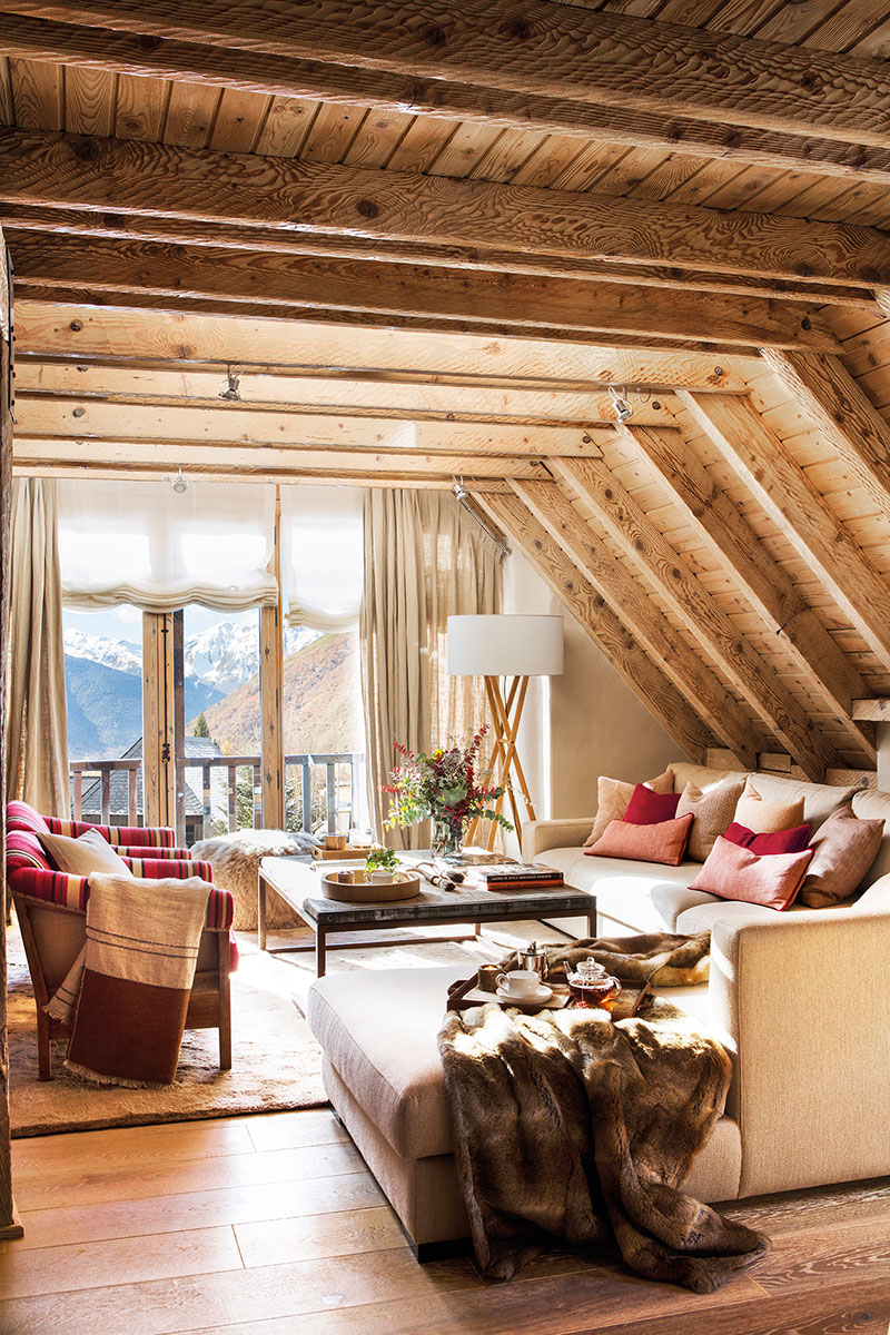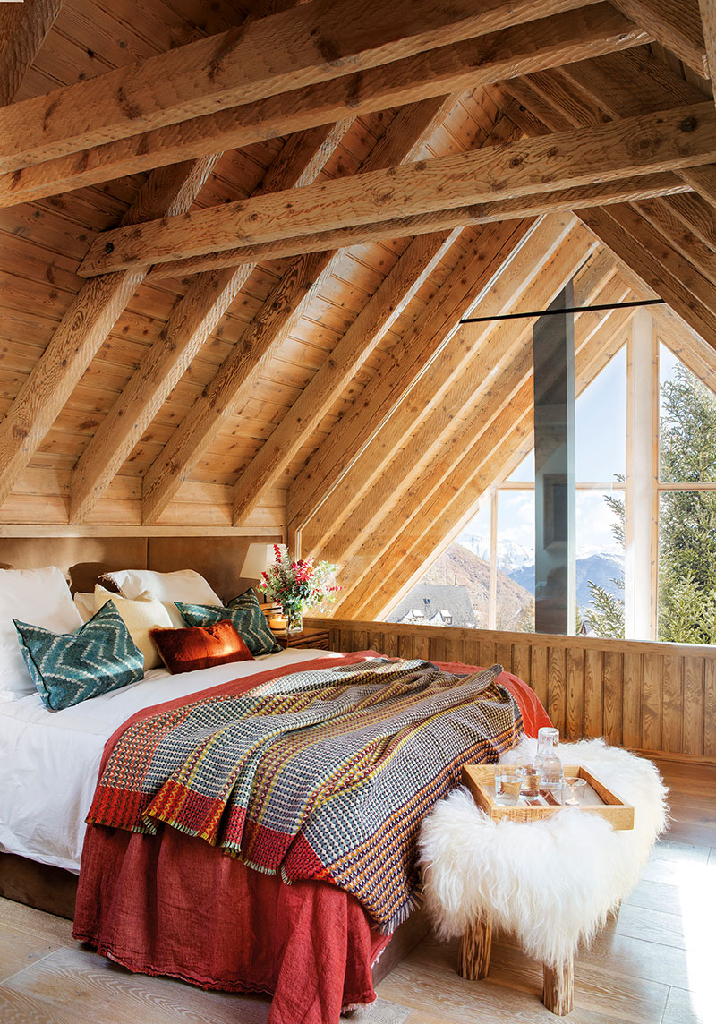 Когда их дети выросли и поехали учиться в колледж, Мануэль и София решили найти для себя уютное гнездышко в горах, куда они могли бы приезжать на выходные и наслаждаться чудесной природой и умиротворенным временем вдвоем. Этот небольшой деревянный домик у подножья гор в долине Аран на севере Испании идеально подходил для этих целей, но на момент приобретения он выглядел не так привлекательно, как сейчас. Дизайнерам пришлось хорошо потрудиться, что восстановить внешний вид дерева в интерьерах, добавить современный камин в гостиной и наполнить уютом с помощью текстиля и декора. Получилось очень тепло и душевно!