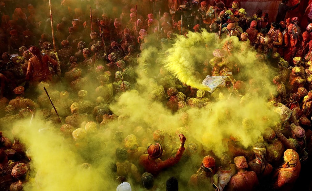 Люди отмечают праздник Холи в храме Кришны в Нандгаоне, Уттар-Прадеш. Почетное упоминание, категория Splash of Colors.