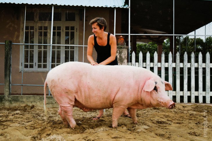 Кабан Джулиан был спасен от мясника во Вьетнаме американским некоммерческим приютом для животных.