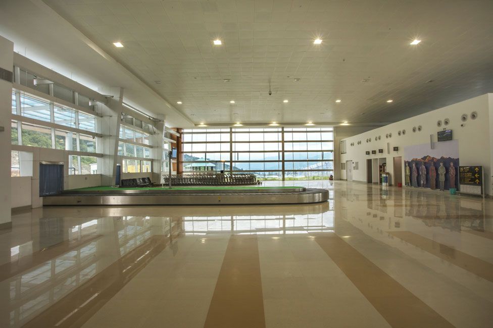 Аэропорт расположен на вершине холма над деревней Пакионг на высоте 1,371 метра над уровнем моря. эропорт окружен глубокими долинами на обоих концах взлетно-посадочной полосы длиной 1,75 км. Он имеет два перрона и здание терминала, которое может одновременно обслуживать около 100 пассажиров. По словам пресс-секретаря индийской компании Punj Lloyd, которая построила взлетно-посадочную полосу, этот сложный рельеф и неблагоприятные погодные условия сделали этот девятилетний проект «чрезвычайно сложным и захватывающим».