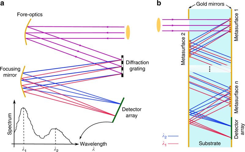 В качестве доказательства концепции команда использовала свою методику для создания спектрометра, который является научным инструментом для расщепления света на разные цвета или длины волн и измерения их соответствующих интенсивностей. Спектрометр, построенный командой Фараона, имеет линейные размеры порядка миллиметра и состоит из трех отражающих метаповерхностей размещенные рядом друг с другом, которые разделяют и отражают свет, и в конечном итоге фокусируют его на матрице детектора. Дизайн описан в статье, опубликованной Nature Communications (доступен полный текст).