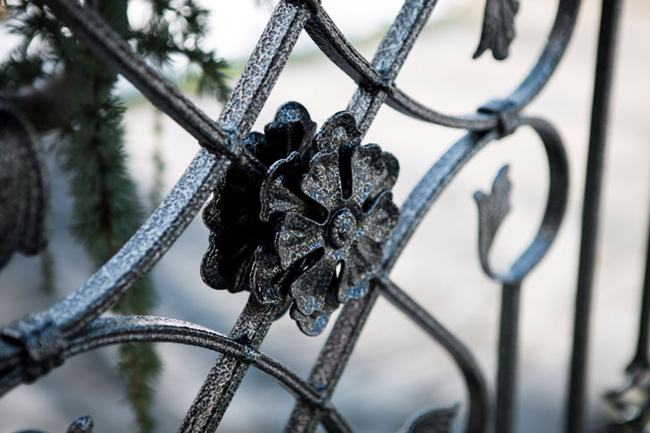Так как кованое железо со временем ржавеет, оно требует специальной антикоррозийной защиты, которая заключается в нанесении правильной грунтовки перед покраской. Не забывайте об этом, иначе ваш забор в результате воздействия влаги очень скоро приобретет цвет красного апельсина.