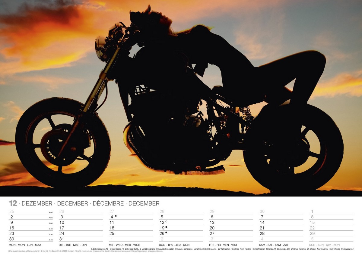 Представляю вашему вниманию очередной календарь на 2019 год "Hot Stuff". На страницах календаря 12 сексуальных девушек позируют на горячих мотоциклах, которые заставляют мужские сердца биться чаще.