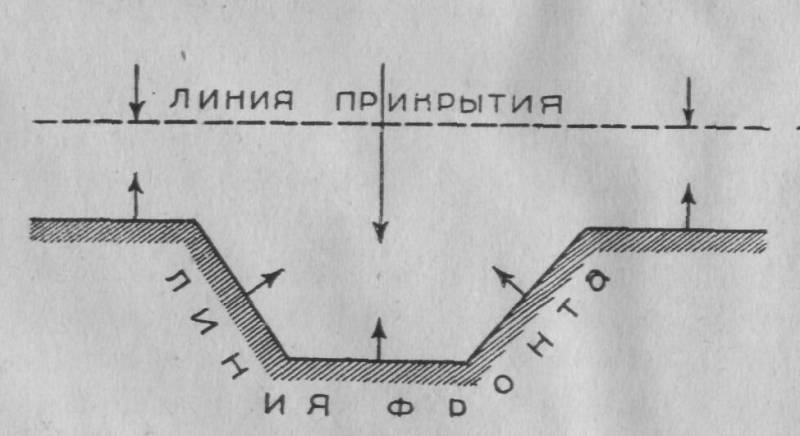 Совершенно иная картина получается, если линия прикрытия сохраняет нормальное (обычное) начертание, а линия фронта получает изломы или общее косвенное направление (см. Схемы №№ 5 и 6) к направлению наступления противника. Этот способ маскировал и вызывал на ложные действия противника. Этот способ (маневр) в известный момент передавал инициативу в руки обороняющегося, застигая наступающего врасплох и заставляя его принимать удар обороны в крайне невыгодном положении, которое могло быть исправлено только перегруппировкой сил. Не есть ли это фридриховская идея «косого порядка»? Безусловно.