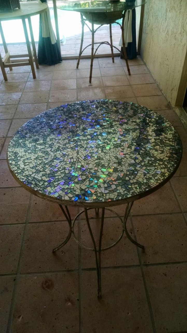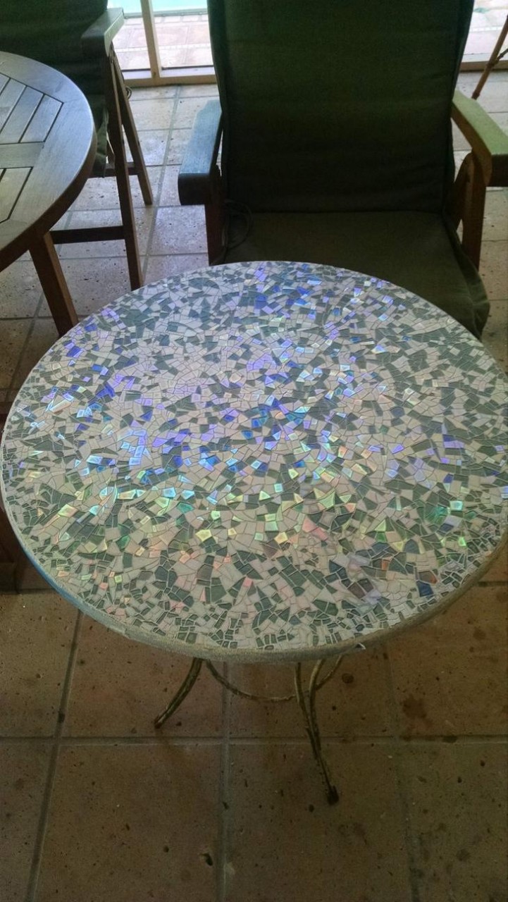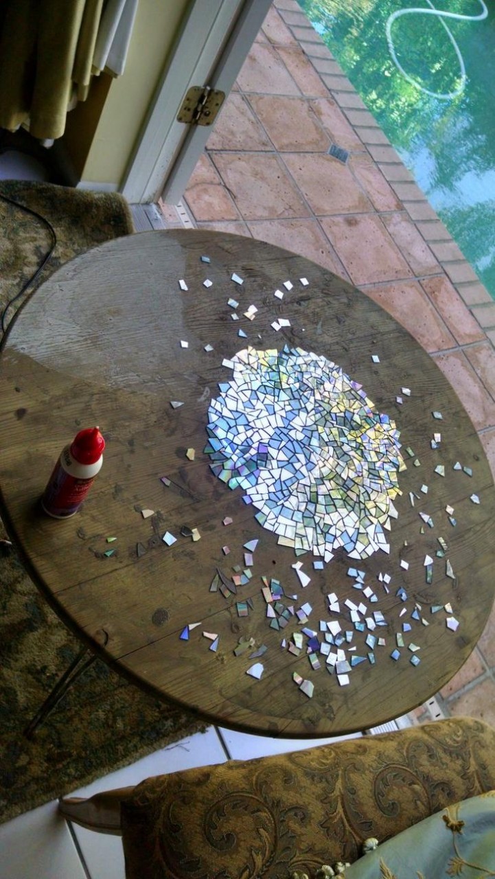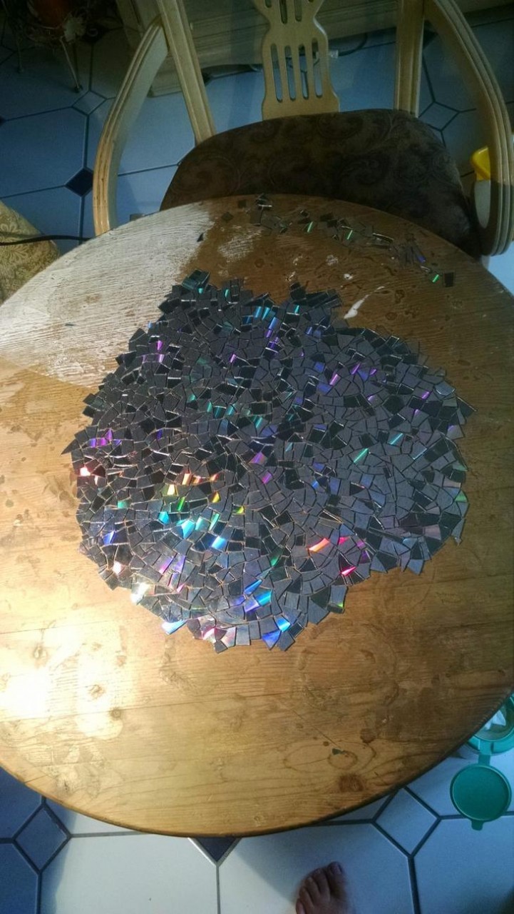 Мозаика этого стола выполнялась из обычных компакт-дисков