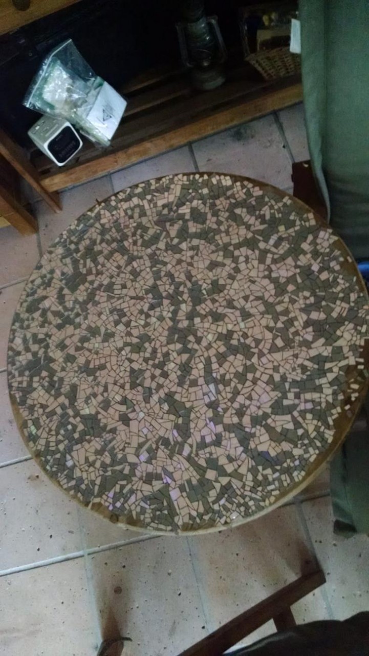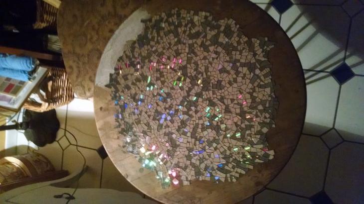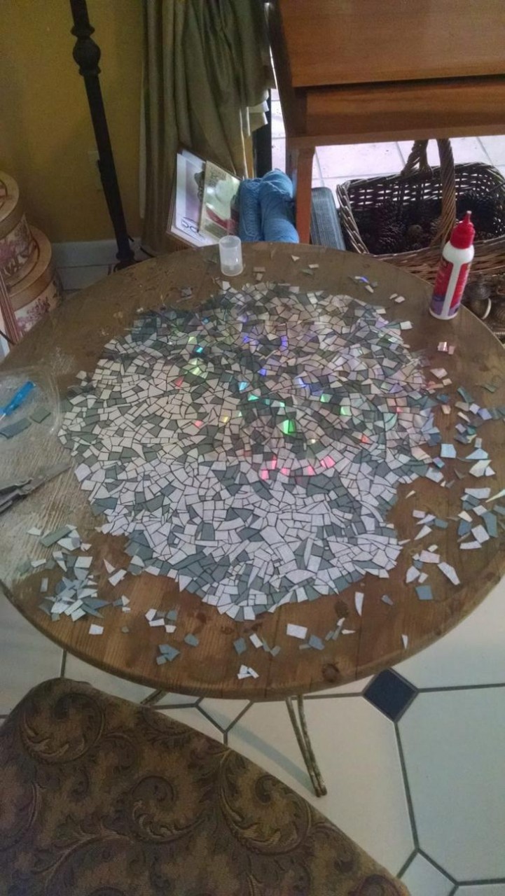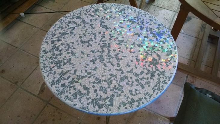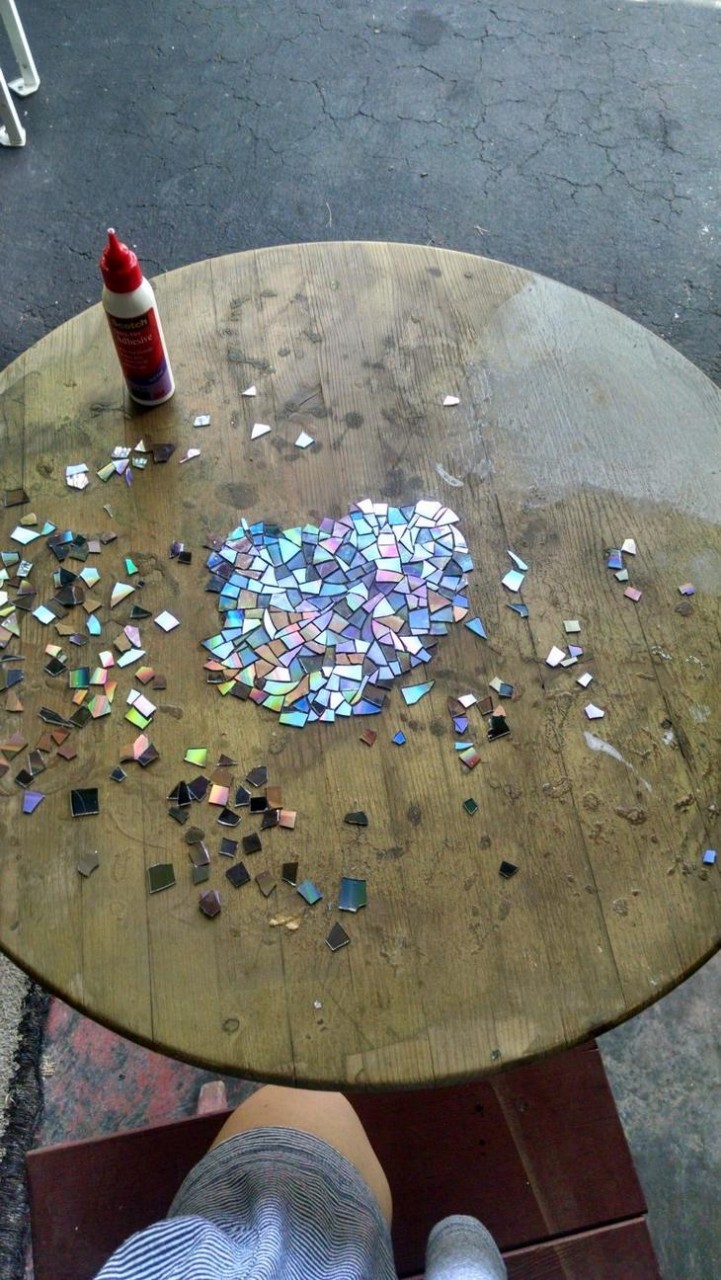 Мозаика этого стола выполнялась из обычных компакт-дисков