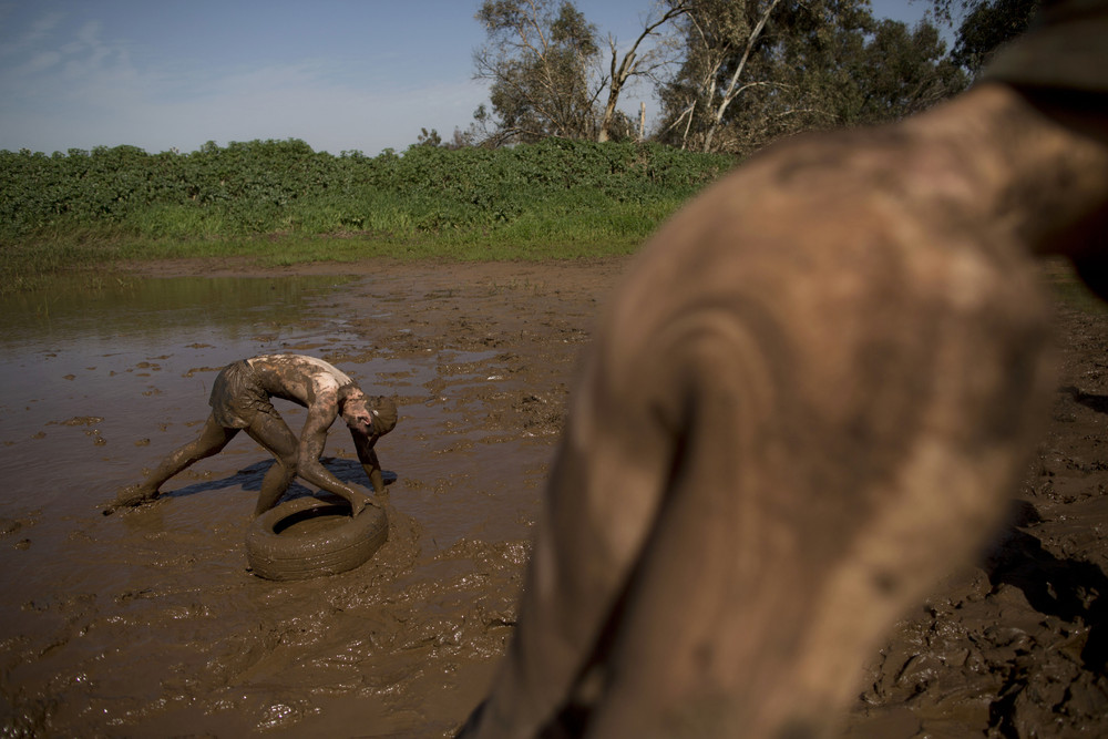 Вытащить шину из грязи — часть силовой тренировки для израильских старшеклассников. (Photo by Oded Balilty / AP Photo)