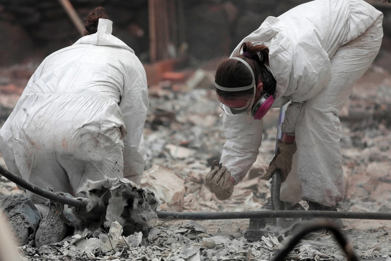 Археологи из лаборатории опознания останков в поисках жертв пожара, Парадайс.