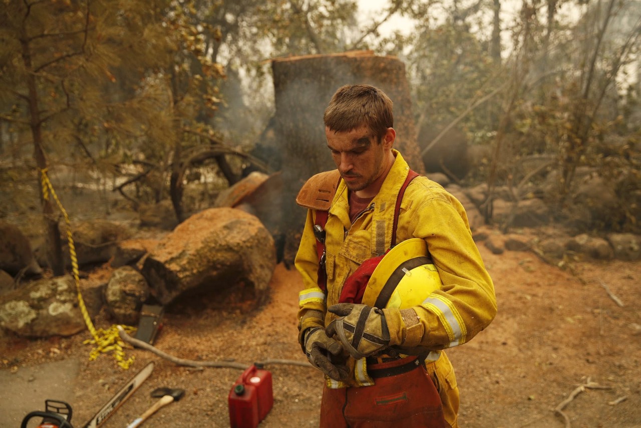 Шон Слэк отдыхает после тушения пожара, Парадайс.
