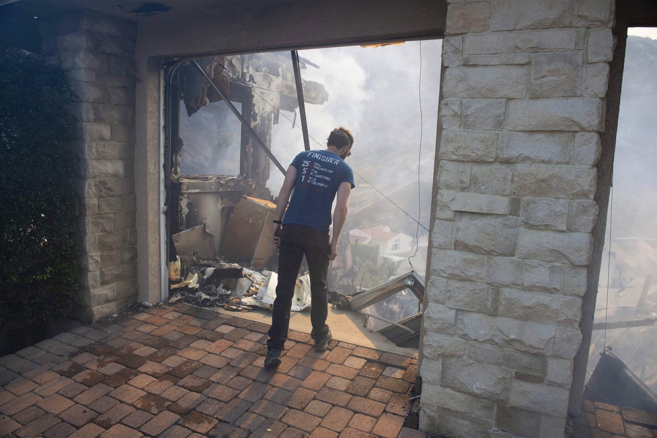 Шейн Кларк смотрит на нижний этаж своего разрушенного дома, Белл-Каньон.