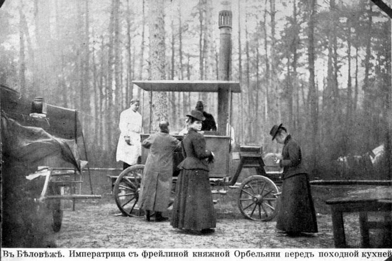 Фотографий этого похода фактически не сохранилось, но вот вам, пожалуйста, более ранние фото. Датированы они 1897 годом, и ярко иллюстрируют то, что у императорского семейства и прочих августейших особо уже на тот момент были вполне себе мобильные центры приготовления пищи.