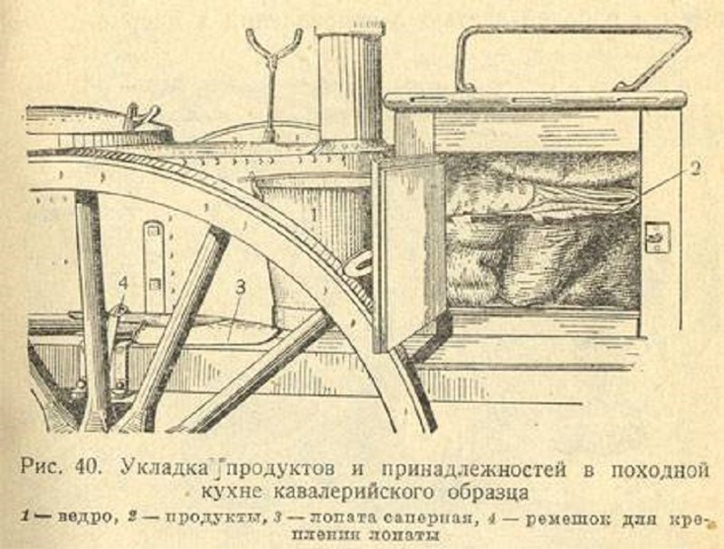 На снимке видно, что кухня двухкотловая. Плюс из двуколки она быстро стала четырехколесной, обзавелась передком, на котором разместился ящик, где было удобно хранить запас дров, шумовки и прочие полезности.