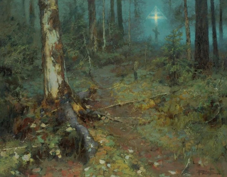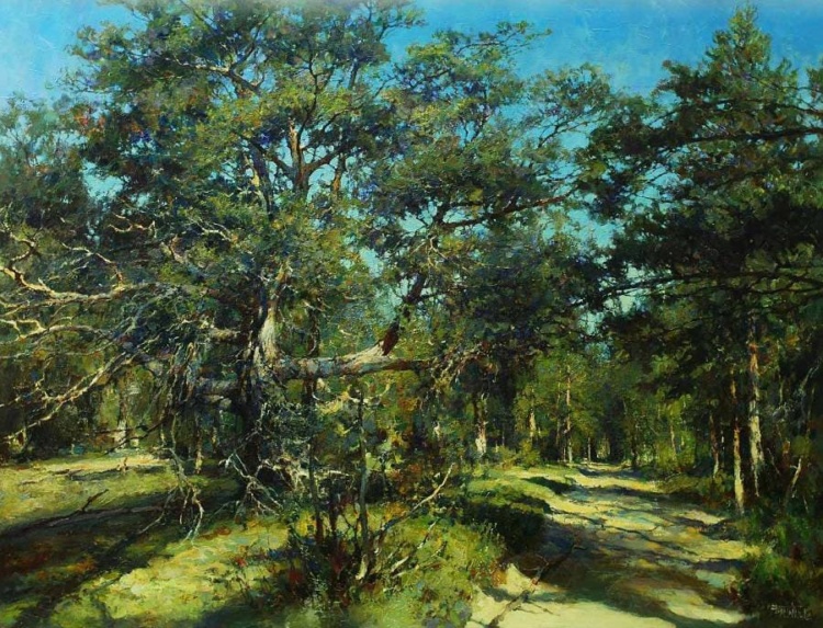 Полотна Юрия Васендина просто покоряют. Такая мощь и тихая красота природы, пряно пахнет мокрым лесом и прелыми иголками. А лесное солнце такое, что просто хочется пройтись по этим изумрудным лесным полянам.