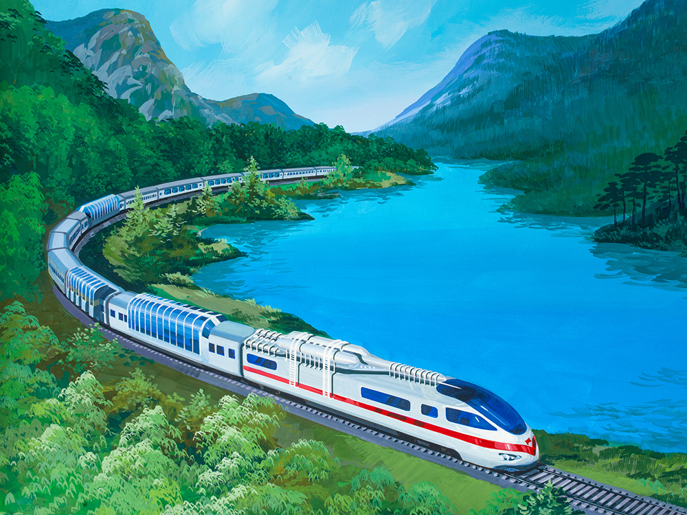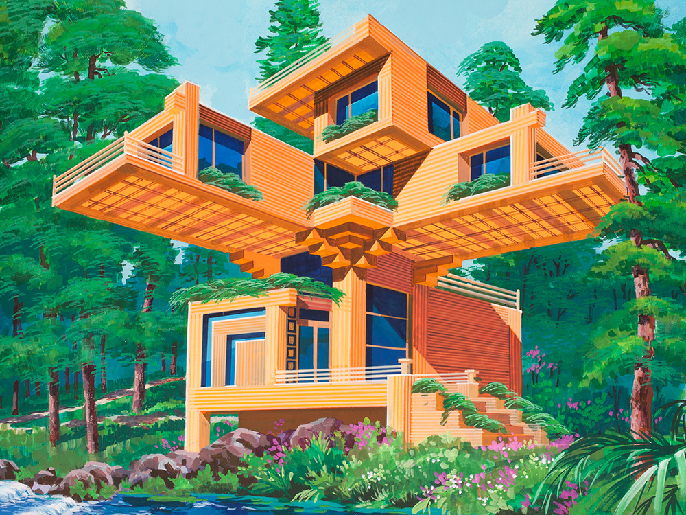 Сказано — сделано. Результаты работы действительно впечатляют. Картины дизайнера отображают то, каким мог быть мир будущего в глазах человека 1950 года, но никак не 2018-го. Впрочем, чего еще ожидать от жителя страны, вот уже полвека оторванной от цивилизации?