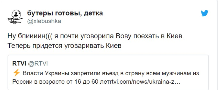 Теперь российским мужчинам от 16 до 60 лет запрещен въезд на Украину. Но они не унывают и шутят по этому поводу в Сети.